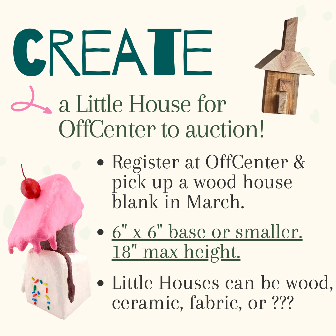 Want to support OffCenter but can’t make it to the Little House Auction? Make a donation today and help keep OffCenter thriving! Whether you can donate $5 or $5,000, your support is needed, appreciated, and impactful.